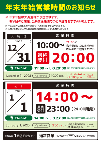 ※大変混雑する可能性がございます。お時間に余裕を持ってお越しください。