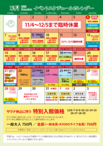 ■12/11(木)、12(金)、19(金)は臨時休業日のため除く