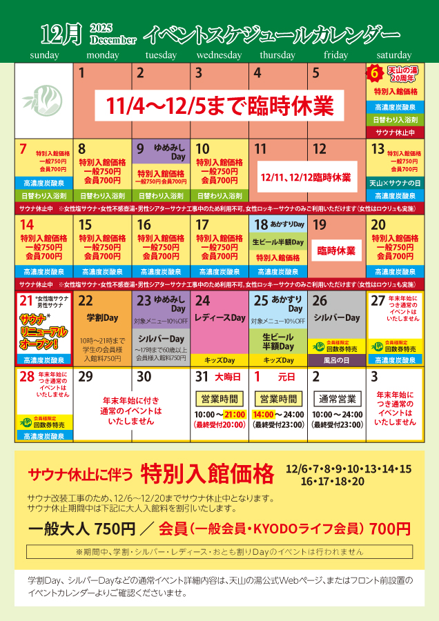 12/6㊏で天山の湯は20周年! 日頃のご愛顧に感謝して、記念イベントを開催いたします!