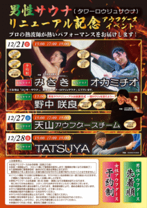 【男性サウナ】 ・野中 咲良 13:00「男性サウナリニューアルお披露目式」