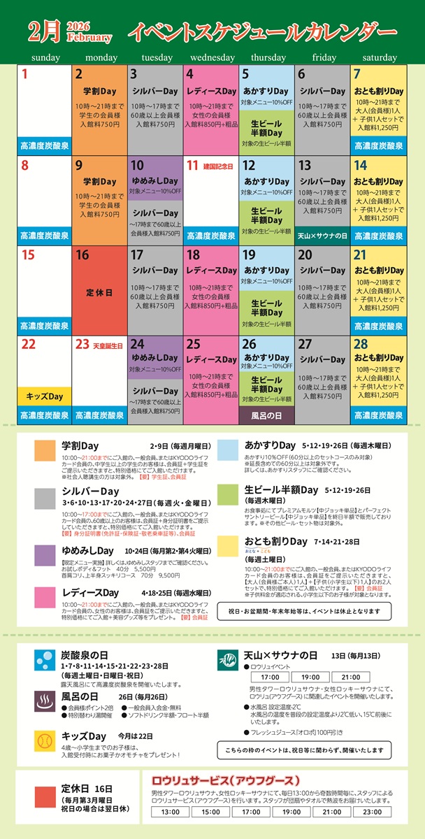2026年2月のイベントカレンダーは下記の通りとなります。