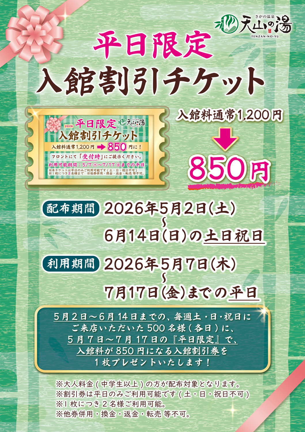 平素より天山の湯をご利用いただき、誠にありがとうございます。